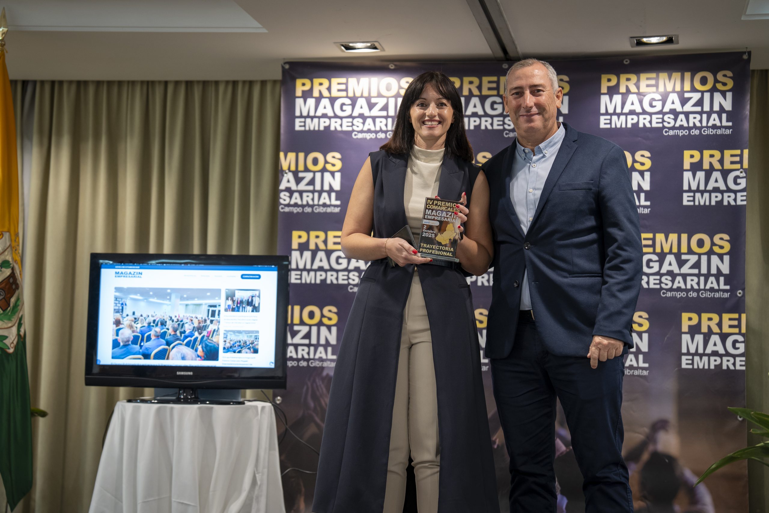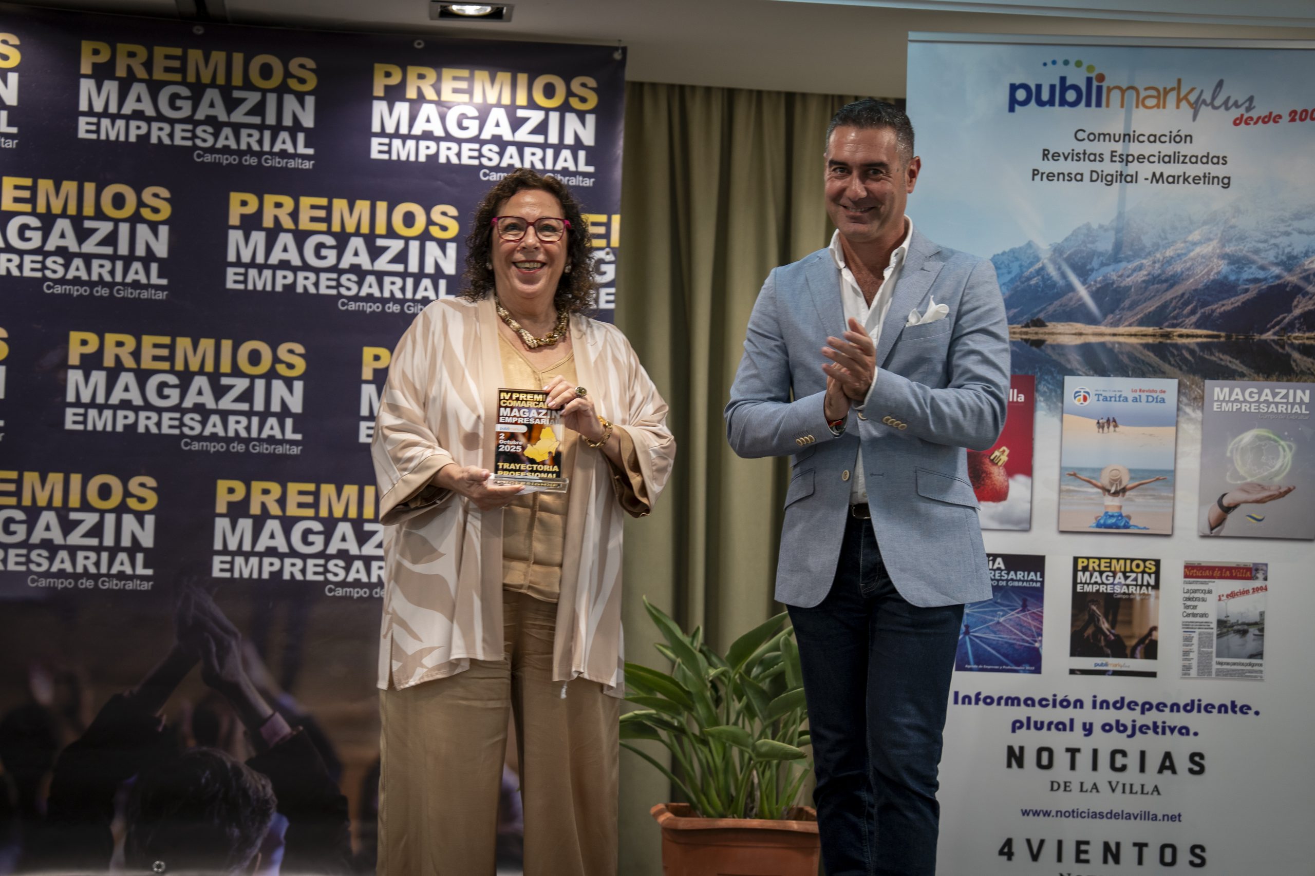 - Carmen Cordón, profesional del marketing, recibió el galardón de manos de Juan Carlos Carrillo, vicepresidente de la Asociación Empresarial Impulsa y tesorero de la Cámara de Comercio del Campo de Gibraltar.
